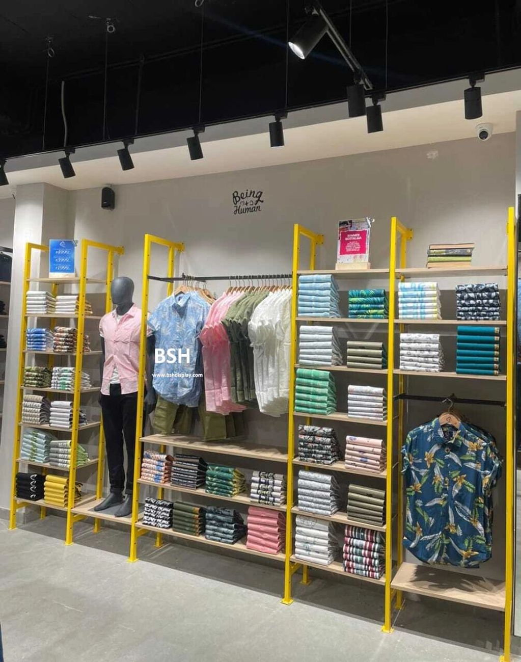 This is a spacious shirt rackson wall Apparel Racks on wall. These racks are ideal for displaying men apparels and other accessories. These are durable and flexible so that you can shift them easily from one place to the other.